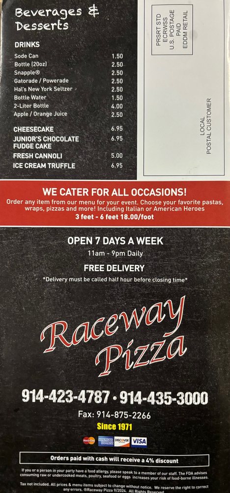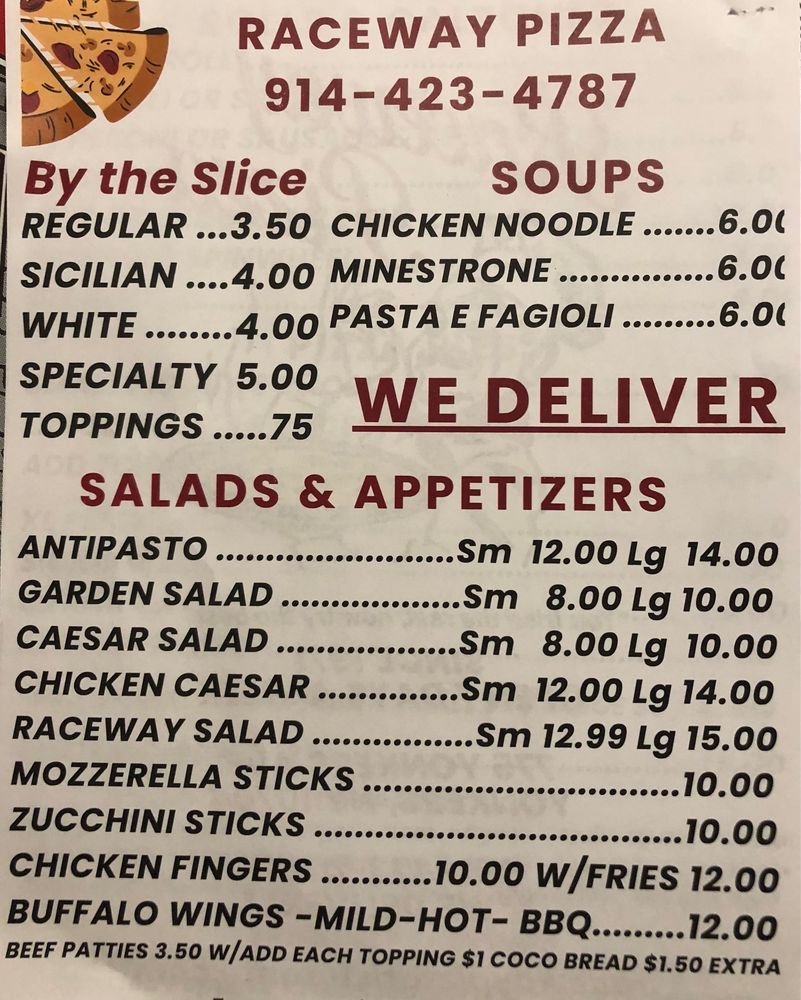 Guests have raved about the crispy, flavorful pizza and friendly service, making Raceway Pizza a must-visit destination. Whether it's for dine-in or a quick DoorDash delivery, you're guaranteed a satisfying experience!